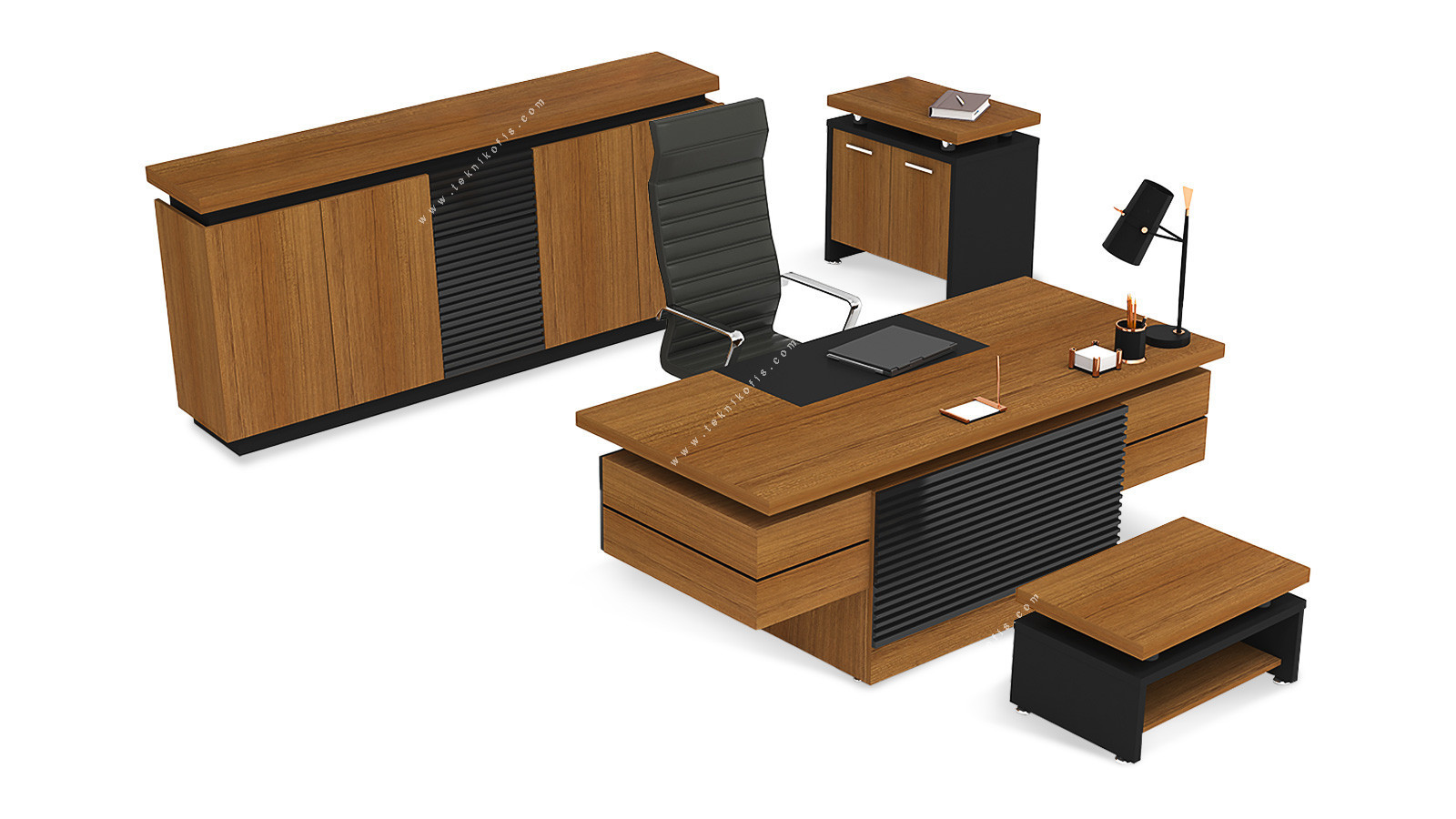 Letra Makam Takımı, yöneticilerin günlük iş akışını en üst düzeyde desteklemek üzere tasarlanmış, işlevselliği ve pratik kullanım alanlarını ön planda tutan bir ofis mobilya grubudur. Takımın geniş çalışma masası, dizüstü bilgisayar, evraklar ve ofis aksesuarları için yeterli yüzey alanı sunarak rahat bir çalışma ortamı sağlar.