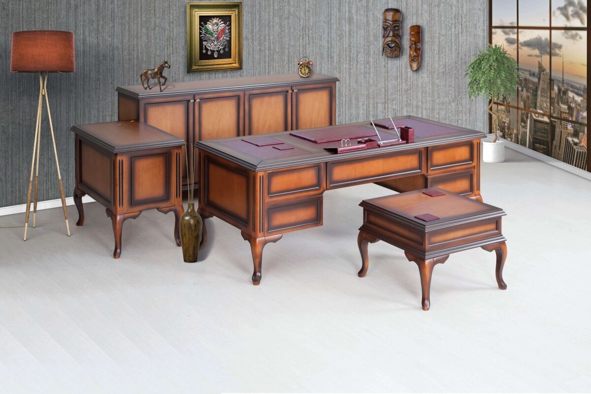 Ofis mobilyasında koyu ahşap tonu tercih edilmiş. Fakat renk tonlaması kabul edilebilir şekilde olduğunu söyleyebiliriz. Çalışma odasını koyu renge boğmak istemeyenler için renk tonlaması normal seviyede. Makam takımı, 4 ofis mobilya eşyasından oluşmaktadır. Her mobilyanın ayak kısmı yüksek şekilde tasarlanmıştır. Görsel olarak güzel olan bu görüntü temizlik esnasında da kolaylık sağlamaktadır. Lukas makam takımı, uluslararası standartlara uygun üretilmekte ve 2 sene garantisi yer almaktadır.