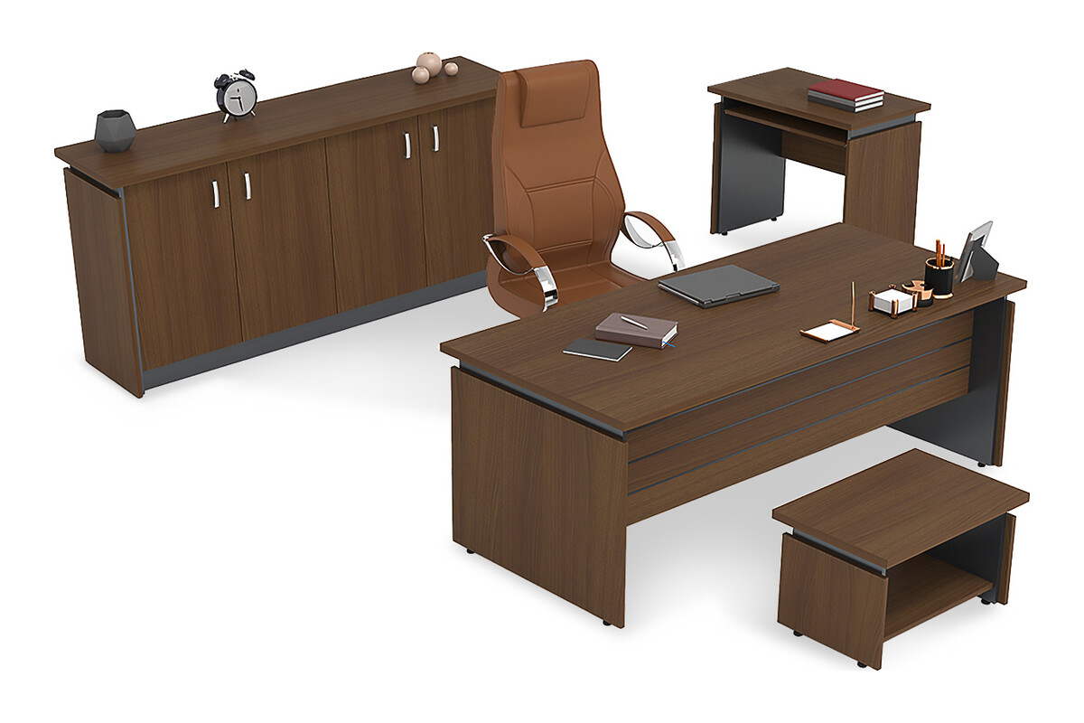 Manner Yönetici Takımı, modern ofis ambiyansına sıcak ve prestijli bir dokunuş katmak üzere özenle tasarlanmıştır. Takımın genelinde kullanılan tonlar ve minimal çizgiler, mekana sofistike ve çağdaş bir estetik kazandırır. Takımın keskin hatları ve sade tasarımı, ofisinize düzenli ve güçlü bir görünüm sunar.