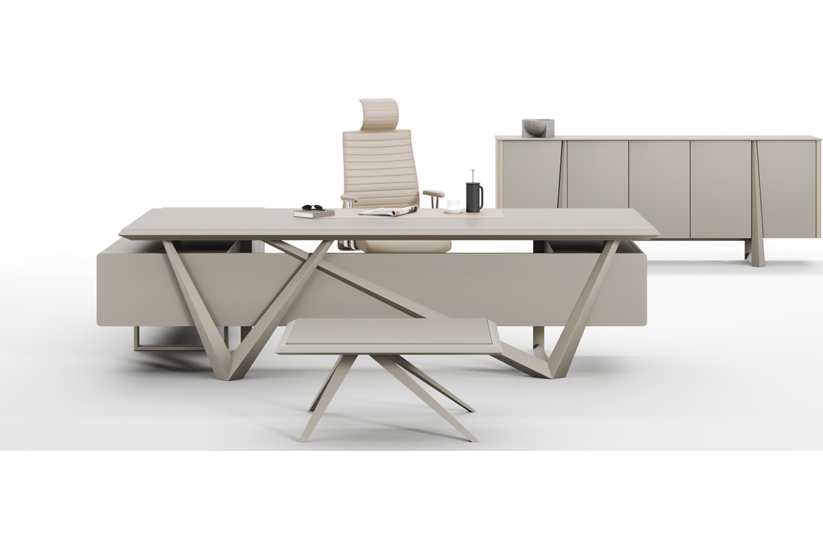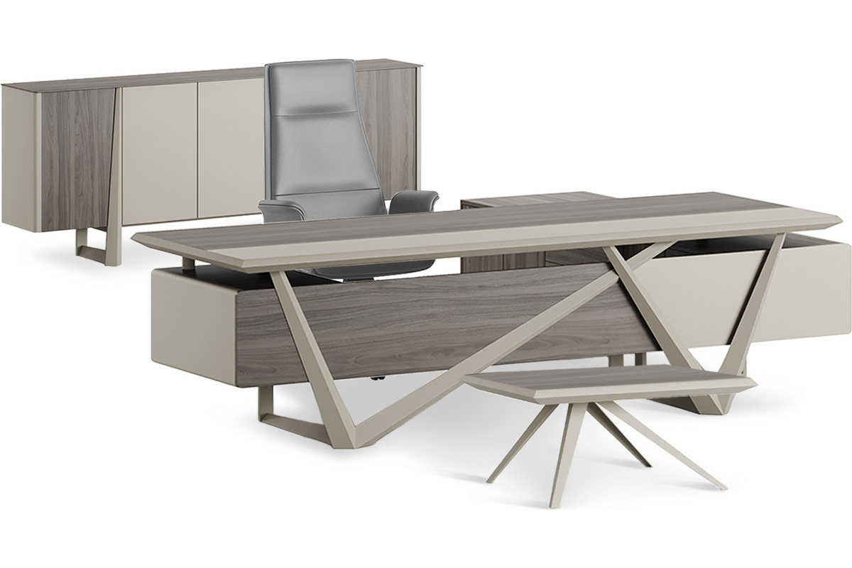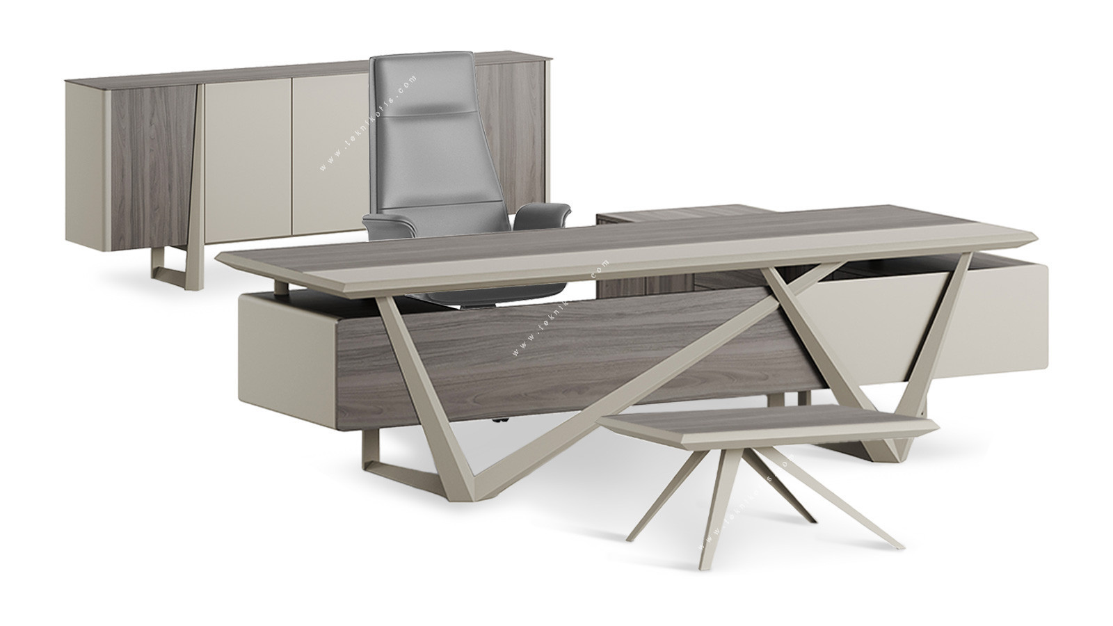 Bu yönetici takımı, ofisinize sadece işlevsel mobilyalar sunmakla kalmaz, aynı zamanda estetik bir ifade oluşturur. Temiz çizgileri ve birbirini tamamlayan unsurlarıyla, modern ve profesyonel bir çalışma ortamı yaratır.
