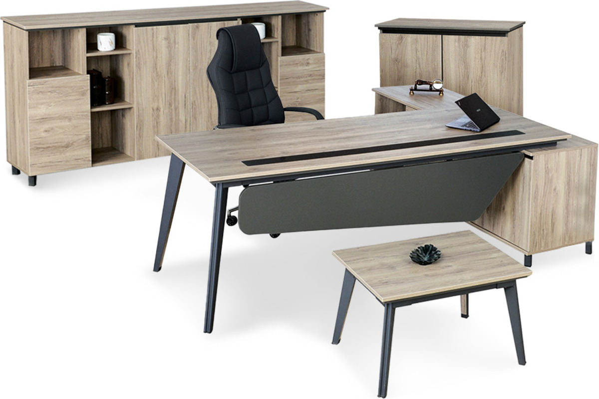 Panawe Konsollu Yönetici Takımı, modern ofislerin dinamik ihtiyaçlarına cevap veren, akıllıca tasarlanmış bir settir. Konsol ünitesi, takımın genel yapısını tamamlayarak estetik bir bütünlük sağlarken, aynı zamanda düzenli bir depolama alanı sunar. Masanın temiz çizgileri ve sağlam ayak yapısı, uzun ömürlü bir kullanım vaat eder. Bu konsollu yönetici takımı, yöneticilere hem geniş bir çalışma alanı hem de kişisel eşyalarını düzenli tutma imkanı sunar. Panawe yönetici takımı, minimalist estetiğiyle dikkat çekerken, aynı zamanda güçlü bir duruş sergiler.