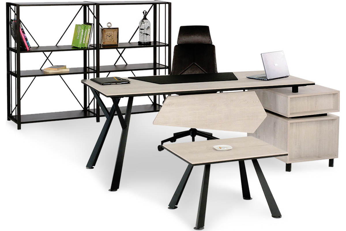 Pasin Kısa Etajerli Yönetici Takımı, modern yönetici ofisleri için özel olarak tasarlanmış, metalin dinamizmini ve ahşabın doğal sıcaklığını birleştiren kapsamlı bir mobilya setidir. Bu takım, ofisinizde çağdaş, düzenli ve verimli bir çalışma atmosferi yaratmak üzere titizlikle üretilmiştir. Takımın ana parçaları, geniş ve etajerli bir yönetici masası, bol depolama alanı sunan bir kitaplık ve şık bir sehpadan oluşur.