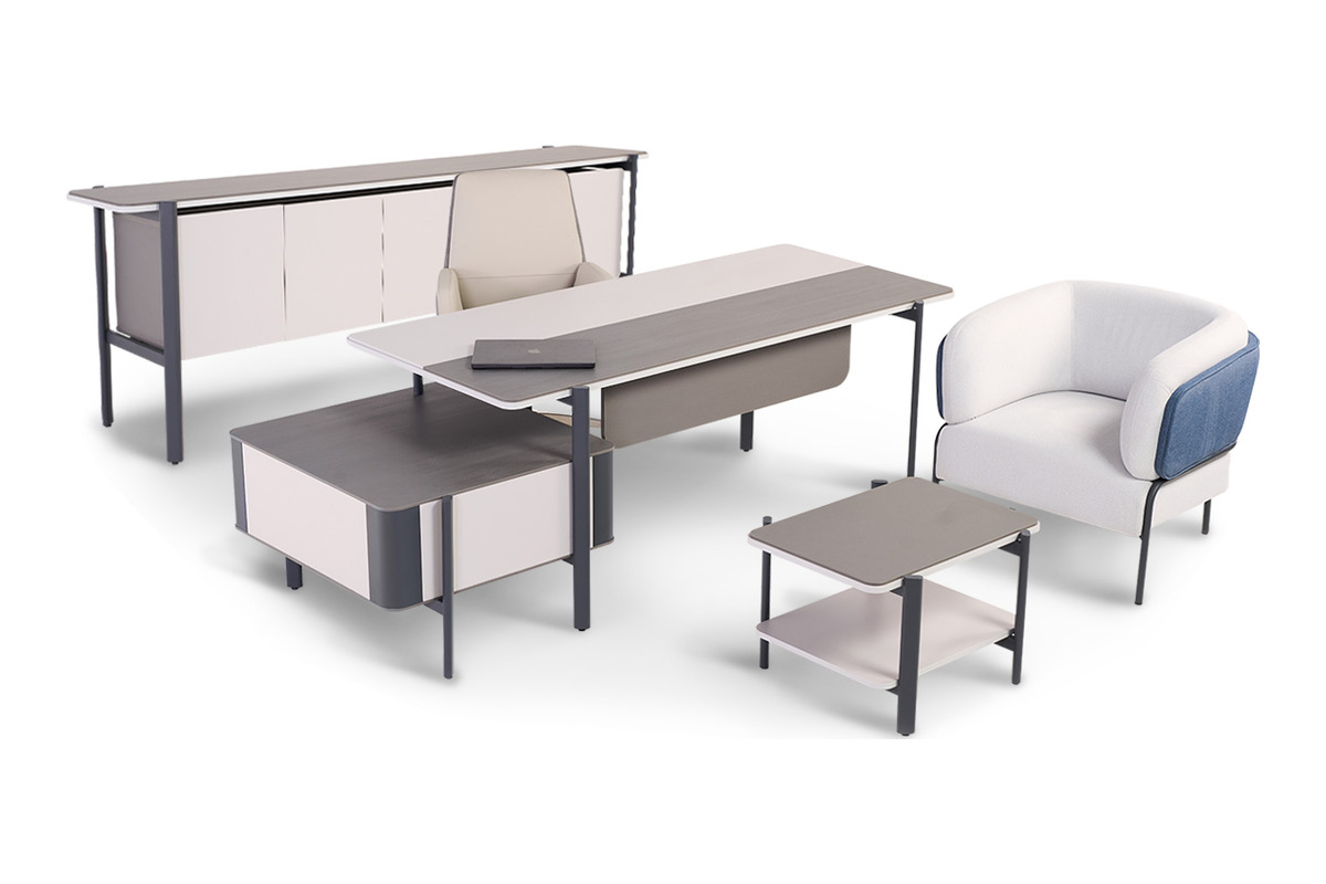 Pax Modern Yönetici Takımı, masa, dolap ve sehpadan oluşan şık ve bütüncül tasarımıyla yönetici ofislerine zarif bir atmosfer kazandırır. Özellikle masanın kendine özgü etajer tasarımı hem estetik hem de fonksiyonel bir kullanım sunar. Modern ve ferah çizgileri sayesinde ofis alanlarını daha düzenli ve prestijli bir görünüme kavuşturur.