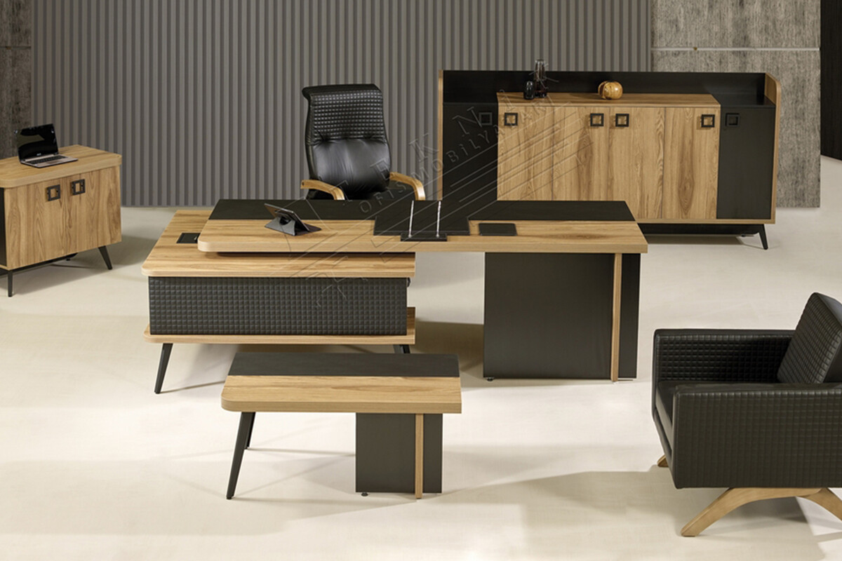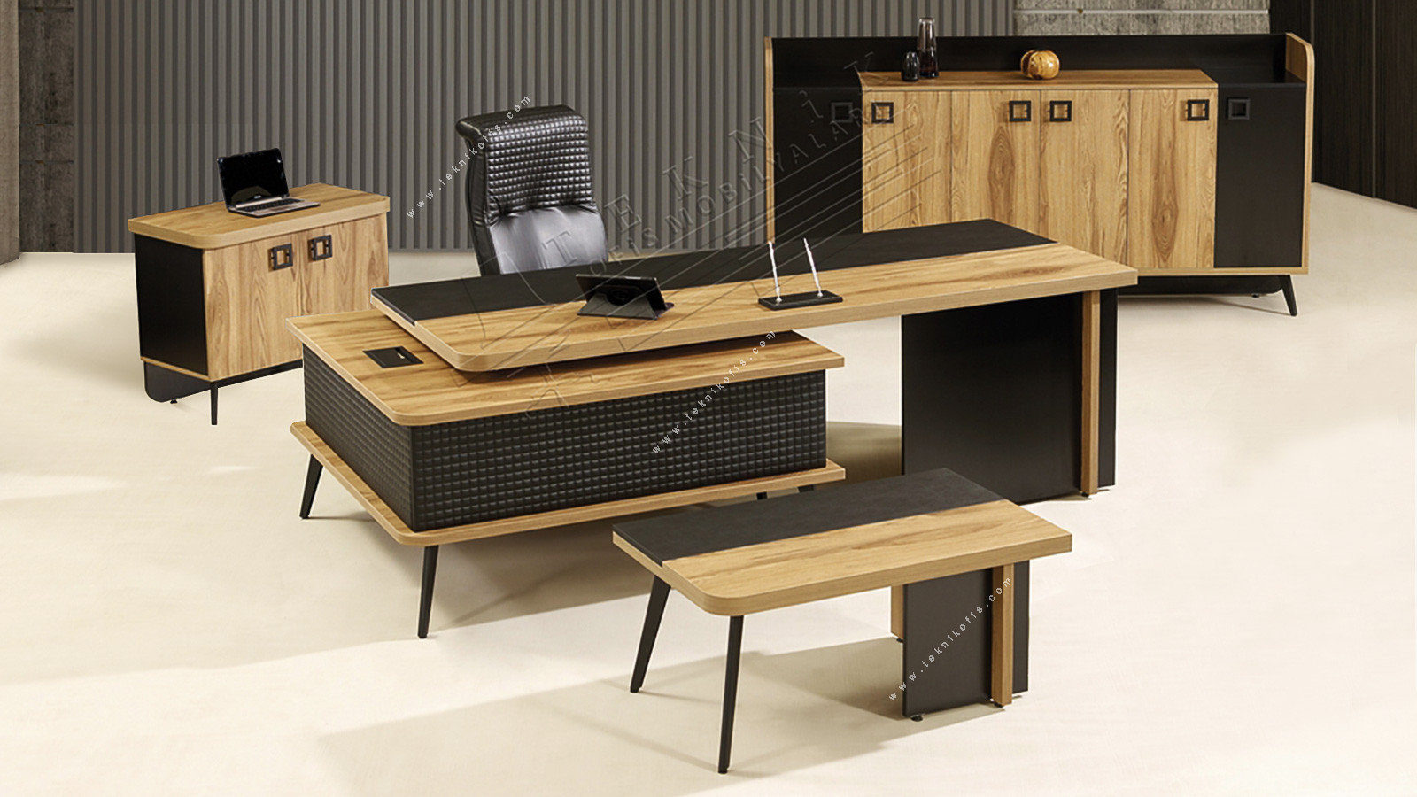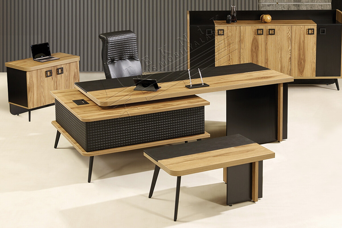 Bu takım sadece bir çalışma alanı olmanın ötesinde, ofisinizin mimari kimliğine ve sizin kişisel zevkinize dair güçlü bir ifade sunar. Misafirlerinizi ve iş ortaklarınızı ilk bakışta etkileyecek bu özel tasarım, profesyonelliğinizi ve estetik anlayışınızı gözler önüne serer. Bu modern makam takımı, ofisinizin genel atmosferini yükselterek, ilham verici ve etkileyici bir çalışma ortamı yaratmanızı sağlar.