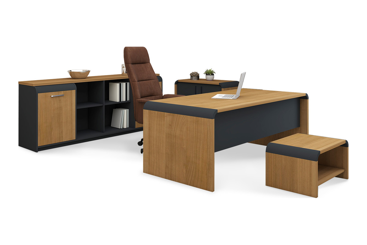 Prude Ahşap Müdür Takımı, müdür ofisleri için özel olarak tasarlanmış, doğal ahşabın sıcaklığını modern çizgilerle birleştiren kapsamlı bir mobilya setidir. Bu takım, ofisinizde samimi, düzenli ve verimli bir çalışma atmosferi yaratmak üzere titizlikle üretilmiştir. Takımın ana parçaları, estetik bir müdür masası, geniş depolama alanı sunan bir dolap, uyumlu bir etajer, işlevels bir keson ve şık bir sehpadan oluşur. Modern ve şık çizgileri, her türlü ofis dekorasyonuyla mükemmel bir uyum sağlayarak ortamın profesyonel imajını güçlendirir.