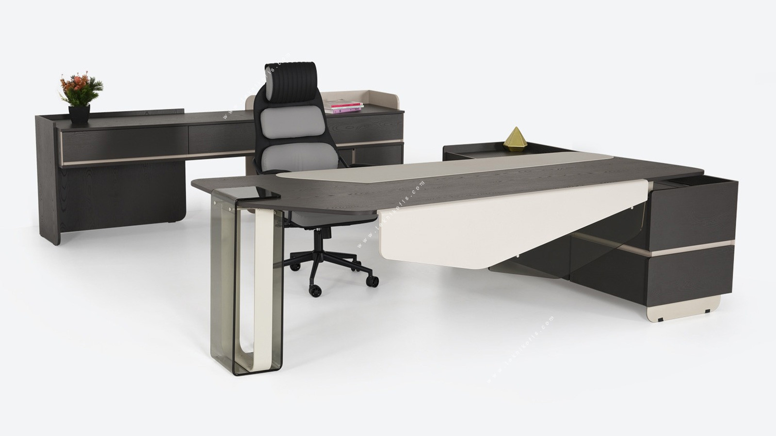 Respon Yönetici Masa Takımı, ofisinize çağdaş bir çizgi ve profesyonel bir atmosfer katmak üzere özenle tasarlandı. Takım, estetik bir modern ofis masası, uyumlu bir dolap ve pratik bir orta sehpadan oluşmaktadır. Geniş verimli bir çalışma ortamı sağlarken, entegre depolama alanları ve çekmeceler ofis düzeninizi korumanıza yardımcı olur. Şık ayak tasarımları, takımın genelinde modern ve hafif bir görünüm yaratır. Respon, prestijli bir çalışma alanı arayan ve ofisinde tarzıyla fark yaratmak isteyen profesyoneller için ideal bir seçimdir.
