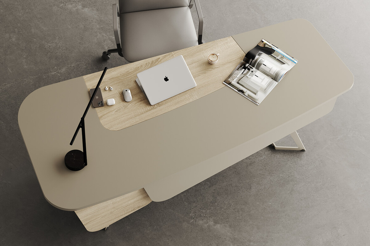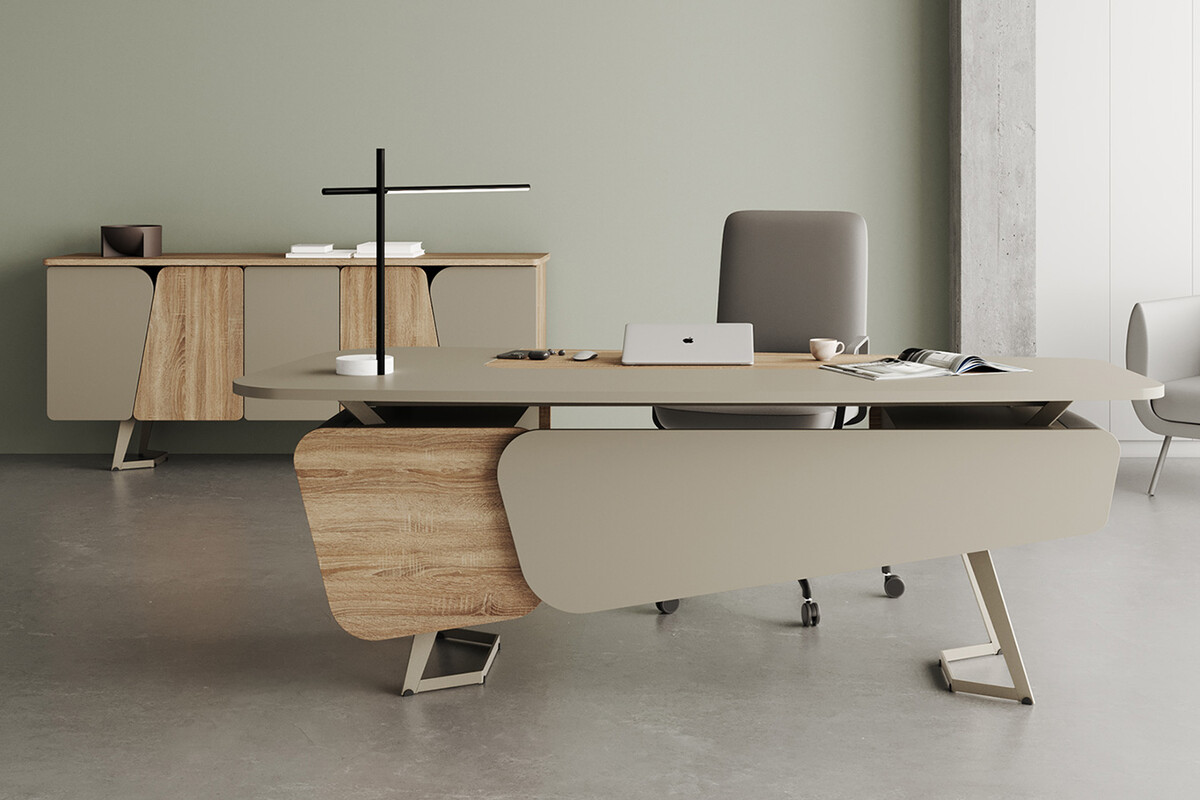 Takımın tüm parçaları, aynı modern tasarım dilini ve malzeme uyumunu yansıtır. Bu sayede yönetici odanızda, baştan sona düşünülmüş, profesyonel ve prestijli bir ambiyans oluşur.