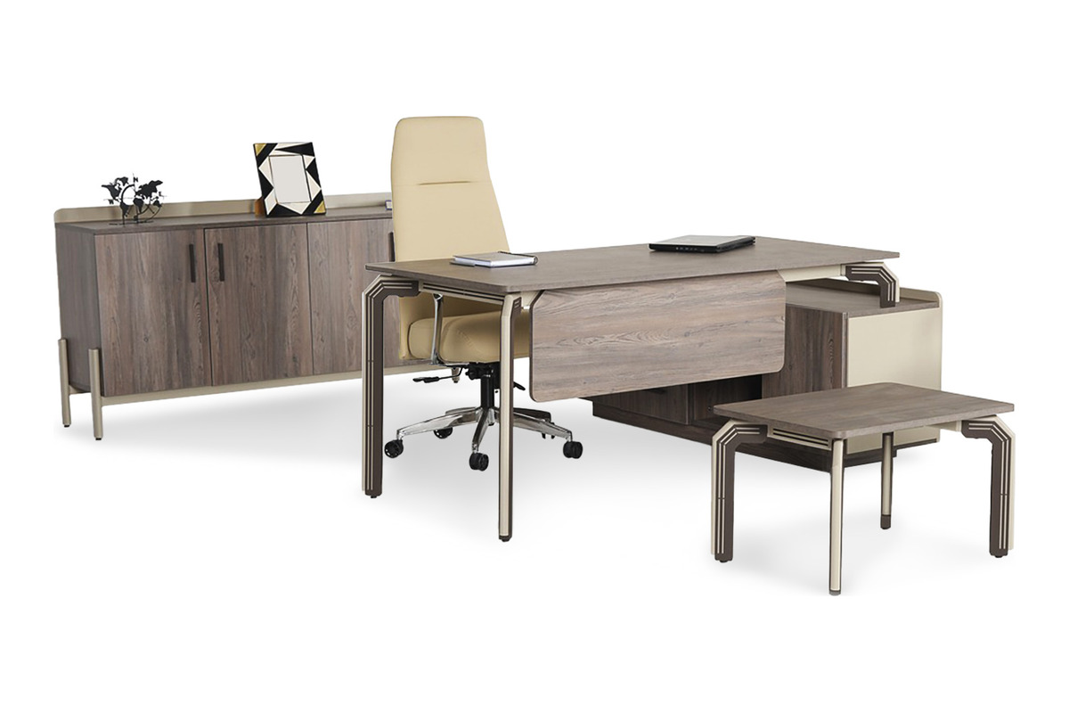 Setary Özgün Ayak Tasarımlı Yönetici Takımı, ofisinize modern bir zarafet ve özgün bir kimlik kazandırır. Takımın en çarpıcı özelliği olan dikey çizgili, metal ayaklar, tasarıma hafiflik ve dinamizm katarken, modern bir estetik sunar. Bu takım, sadece bir çalışma alanı olmanın ötesinde, ofisinizin genel atmosferini yükselten ve kişisel tarzınızı yansıtan bir sanat eseridir. Detaylardaki özen ve minimalist çizgiler, çağdaş ofis tasarımının ruhunu yansıtır. Bu modern ofis takımı, misafirleriniz üzerinde kalıcı bir izlenim bırakmanızı sağlayarak, ofisinizde ilham verici ve prestijli bir ortam yaratır.