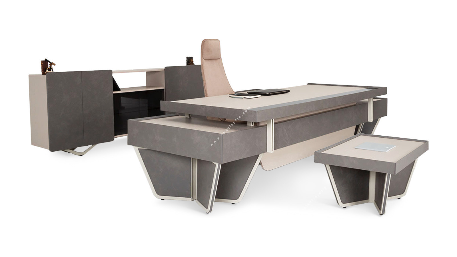 Yönetici odanızda hem estetiği hem de üstün işlevselliği bir arada sunan Shade Yönetici Takımı, çağdaş liderlik vizyonunuzu yansıtır. Bu yönetici ofis takımı, geniş bir yönetici masası, fonksiyonel depolama üniteleri ve uyumlu bir sehpadan oluşarak tüm ihtiyaçlarınıza cevap verir. Takımın genelindeki minimalist ve güçlü çizgiler, ofisinize sofistike bir atmosfer kazandırır. Kaliteli malzemelerin titiz işçilikle buluştuğu Shade Yönetici Takımı, uzun yıllar boyunca ofisinizin prestijini koruyacaktır. Bu modern yönetici mobilyası ile iş görüşmelerinizi daha verimli hale getirin ve kurumsal kimliğinizi en iyi şekilde temsil edin.