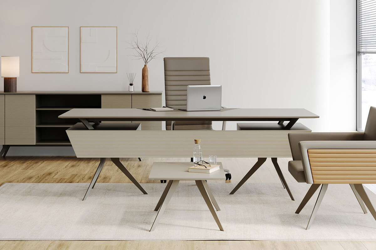 Stark Sail Profil Yönetici Takımı, metal ve melamin malzemelerin güçlü uyumuyla tasarlanmış modern bir yönetici ofisi çözümüdür. Minimal tasarımıyla dikkat çeken bu takım, çalışma alanında estetik ve profesyonelliği bir arada sunar. Metal detaylar dayanıklılık ve çağdaş duruş kazandırırken, melamin yüzeyler uzun ömürlü kullanım sağlar. Takım bileşenleri arasında masa, dolap, etajer ve sehpa bulunur.