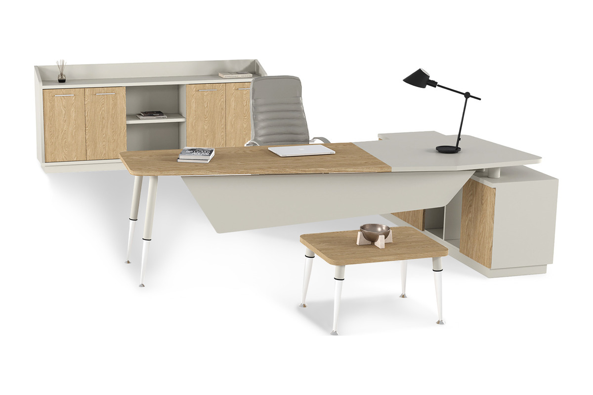 Touch Yönetici Takımı, modern çizgileriyle estetik ve işlevselliği bir araya getirir. Geniş çalışma alanı, belgeler ve bilgisayarlar için ideal bir yüzey sunarken, entegre etajer bölümü depolama ihtiyacını pratik bir şekilde karşılar. Düzenli, ferah ve profesyonel bir ofis atmosferi yaratmak isteyen yöneticiler için mükemmel bir tercihtir.